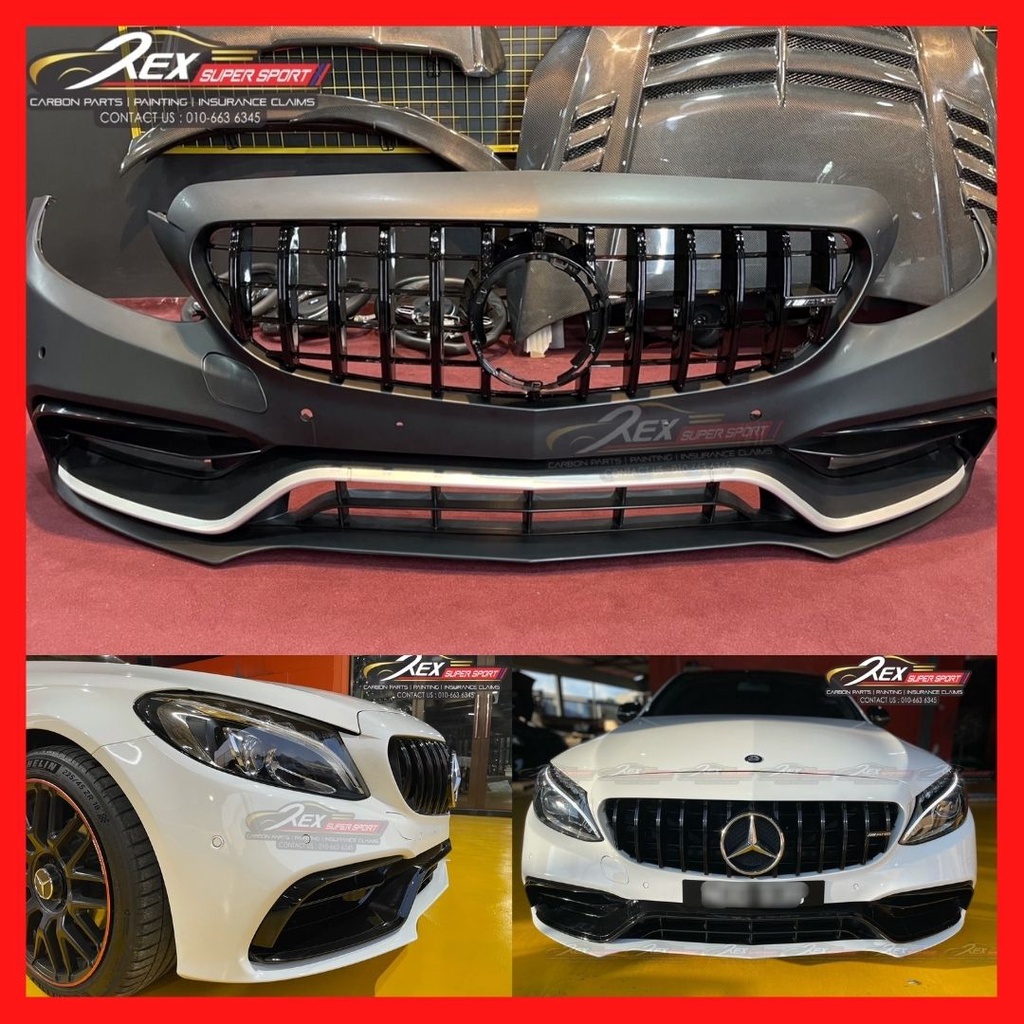 Mercedes Benz C Class W205 C200 C250 C300 C43 C63 Front Bumper C300 Amg C Class Bodykit Body Kit Gt Grill Pp Material Shopee Malaysia